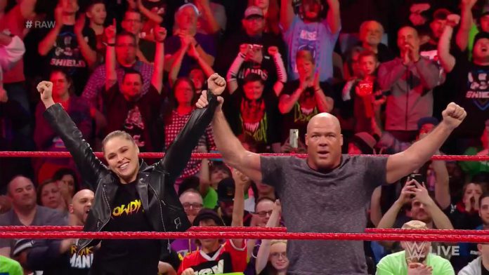 During the opening of Raw, Stephanie McMahon addressed last week’s event that involved herself, Triple H, Kurt Angle and Rousey. She praised all of Angle’s accomplishments as an athlete but noted the importance of him having a steady job to pay the bills. This brought out Rousey to the ring.
