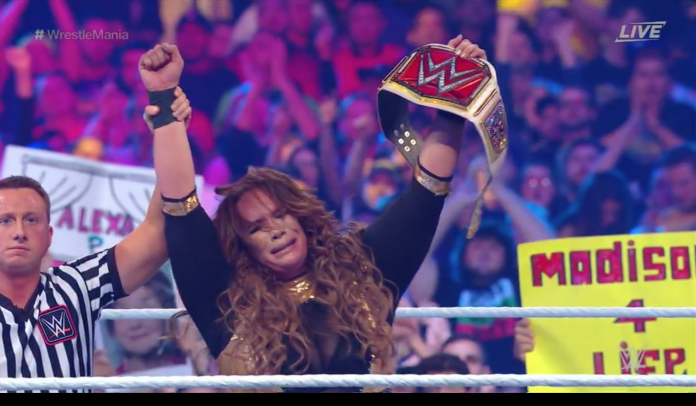 During tonight’s second Women’s Title match at WrestleMania 34, Alexa Bliss’ 223-day reign as Raw Women’s Champion came to an end as Nia Jax defeated her former friend to capture the gold.