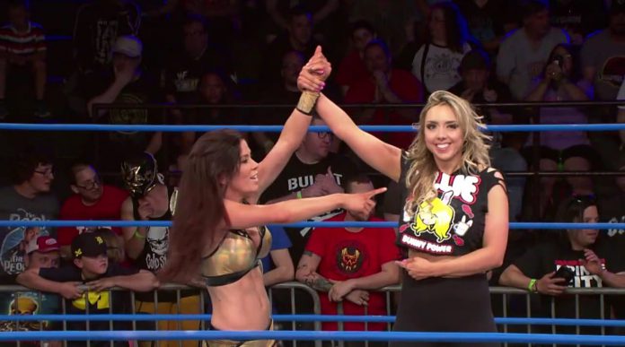 Back in the ring, Yung sets Rayne up for the Panic Switch but in doing so accidentally blinds the referee when Rayne boot comes in contact. Rayne reverses the Panic Switch and lands the Cross Rayne but the referee still can’t see. Suddenly, Tessa Blanchard comes out to attack Rayne from behind. Blanchard sets Rayne up for the Hammerlock DDT but Allie runs in to make the save with a big boot and tosses the third generation Knockout to the outside and then to a guardrail.