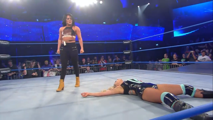 In the midst of Allie’s celebration, in runs Tessa Blanchard who continues to make an example of Allie by laying Allie out with a Hammerlock DDT. During the break, Impact cameras catch up with Blanchard – who says she sees right through Allie. Allie says she wants to save everyone but can’t seem to even save herself. Blanchard accuses Allie’s “doing the thing” agenda as a way to sneak back into the Knockouts Title picture. Unlike Allie, Blanchard knows what she wants and doesn’t hide from that truth. If Allie thinks she’ll get another shot at the Knockouts Title before Blanchard, she is sadly mistaking.
