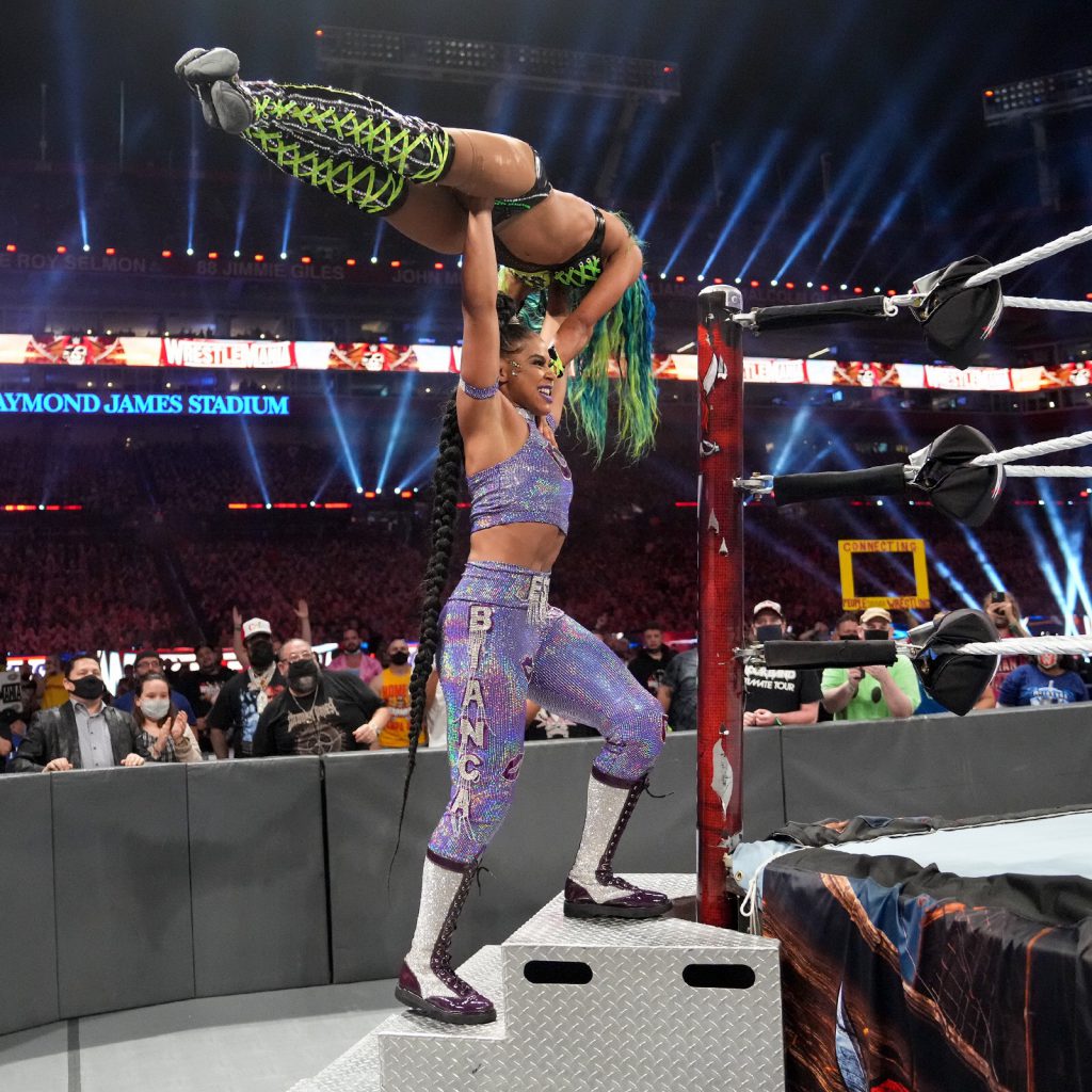It would be the first time two Black women faced off on pay-per-view in the history of WWE in a singles match for a Women’s Championship. This would be the first time two Black women faced off in the main event of a Pay-Per-View and of a Wrestlemania. Now that I think of it, I don’t believe any major promotion has had two Black women main event a major promotion pay-per-view especially for a Championship, and never at their headlining event.