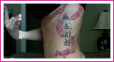 • Chinese lettering down the small of her back