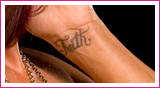 • the word “Faith” inscribed on her left wrist