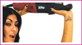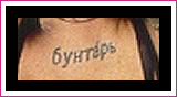 • the word “rebel” written in Russian on the back of her neck