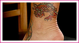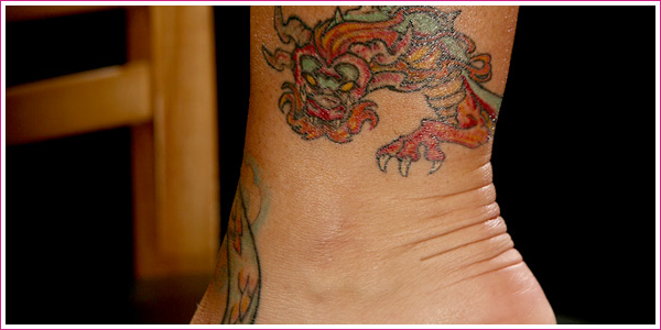 • a dragon wrapped around the “love” symbol on the same ankle
