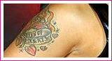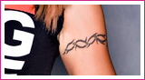• a tribal band on her left bicep