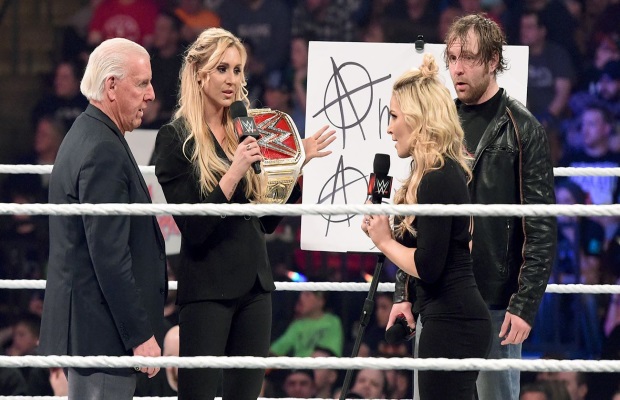 Natalya says that she loves the feel of the place. What with the plant pot, it reminds her of the dentist’s office. LOL! That is the kind of thing Natalya would say on Total Divas. More of this for her character please. A recap of Raw is shown, and Natalya says that things will be different this Sunday with Bret Hart in her corner! Cue Woolotte and Ric Flair. Dean bopping to Charlotte’s theme was hilarious as well.