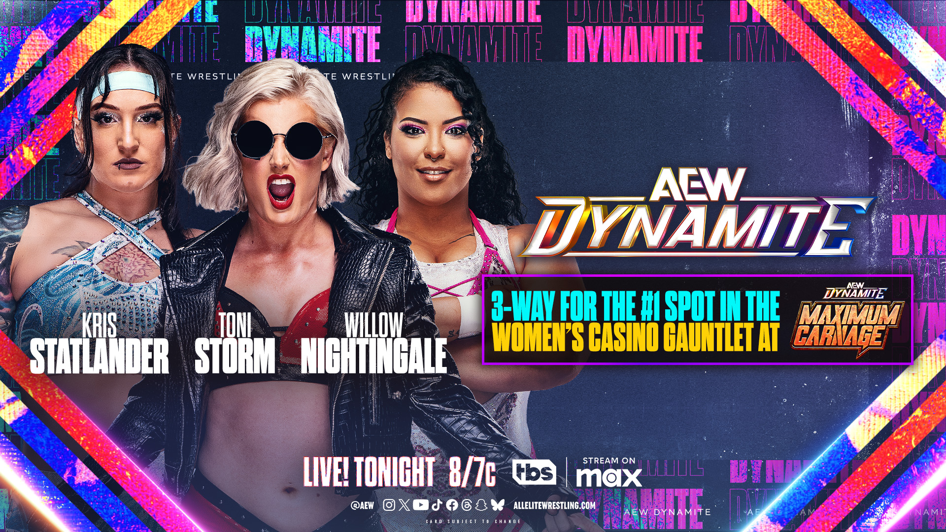 AEW Dynamite Discussion Post: 01.08.25 January 8, 2025 by Nick Kris Statlander vs. Toni Storm vs. Willow Nightingale – Winner Gets #1 Spot Next Wednesday at Maximum Carnage in Women’s Casino Gauntlet Match