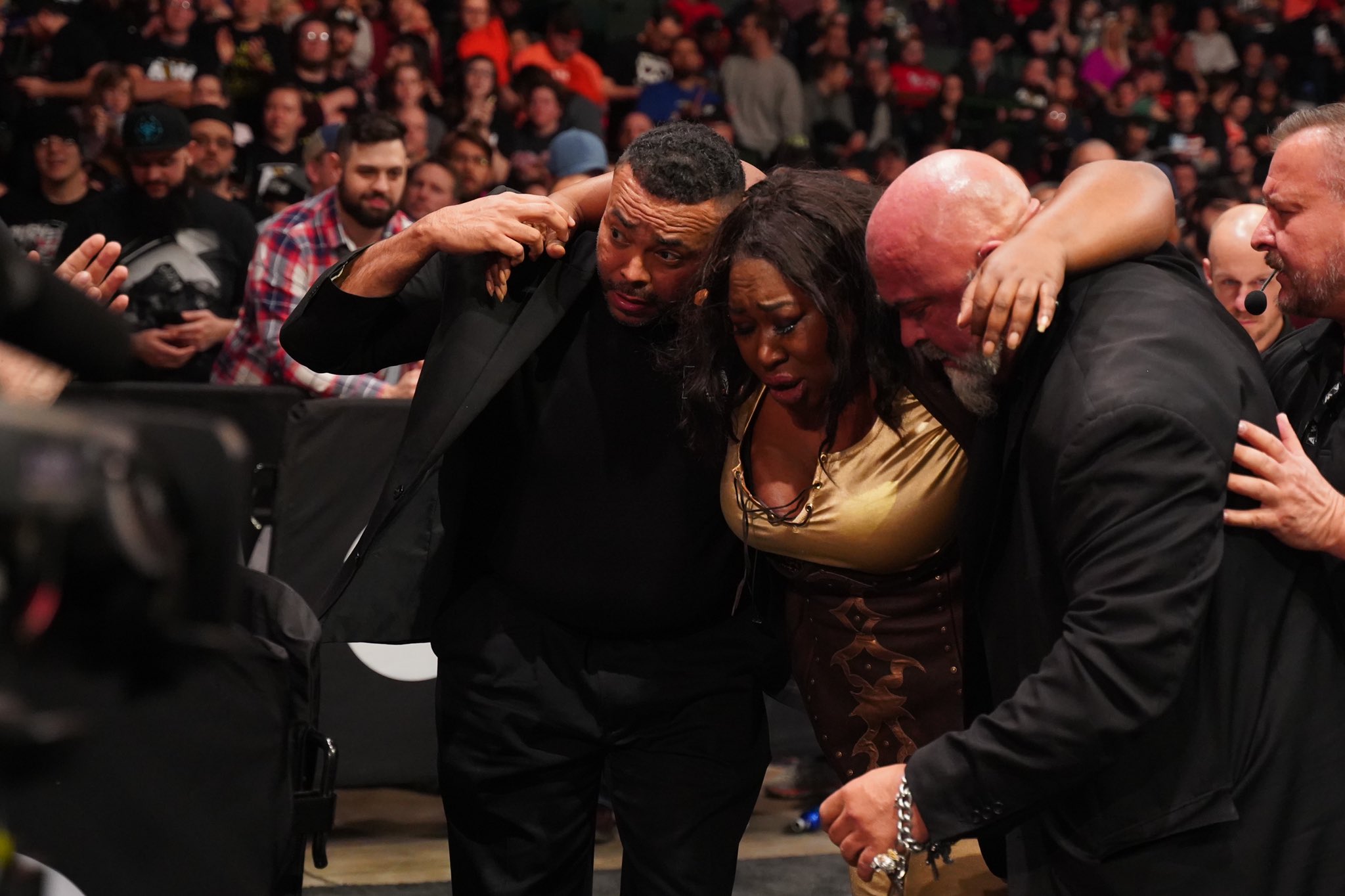 Kong and Mel would exchange words post-match causing member Luther to get involved. He would hold back Kong as Mel took advantage and hit her. She followed this up by throwing Kong through the barrier as the attack continues. Mel would finish up the attack with a leg drop on Kong on the steel steps.