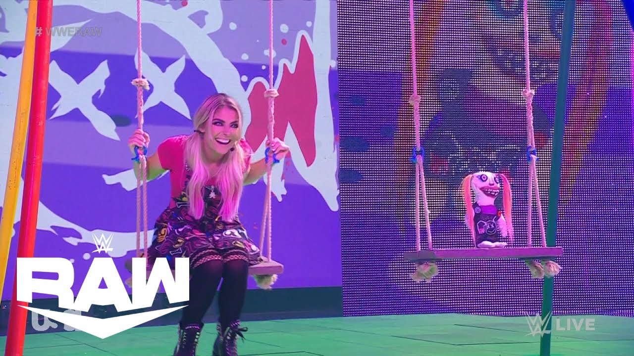 The six-woman tag team match saw WWE Women’s Tag Team Champions Shayna Baszler & Nia Jax team up with Charlotte Flair as they faced Mandy Rose, Dana Brooke, and Asuka. The appearance of Bliss and Lilly on their swing set at the top of the ramp caused all six competitors to stop their arguing in the middle of the ring.