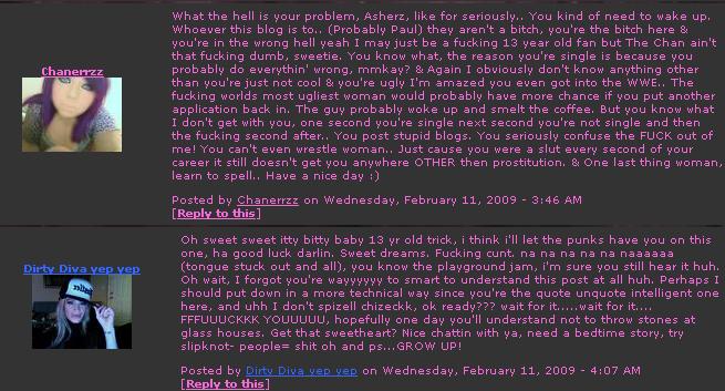 Say, ever wondered what it would be like to peer into the mind of one Ashley Massaro? Yeah, it’s a frightening prospect, but an interesting one at that. Well wait no longer, because the majesty of the inner workings of her brain have been exposed in her latest MySpace blog. Seemingly, Ashley has been wronged by a (former) significant other, and like any sensible 13-year-old girl that loiters outside the mall while wearing too much eyeliner and a Twilight shirt, she expresses her inner anguish through – what else? – a Dashboard Confessional song!