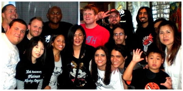 Following the event, Manami Toyota signed autographs in the lobby. Knowing that the demand for a moment with the living legend would be of epic proportions (Diva Dirt fan John Hyperion and I even met one fan who flew out from Japan to see Manami wrestle in America), CHIKARA provided the entire bar area for Toyota’s signing, which lasted close to an hour. During this time I had the privledge of meeting and speaking with Yolanda Jerigan, owner and founder of GIMICK$, a t-shirt line that is very over with the wrestlers themselves (she designed the ‘I Love Heels’ shirts featured in that infamous Awesome Kong/Alissa Flash photo). Ms. Jerigan is also a designer of wrestling fashions (ring gear) and designed the gear Sara Del Rey wore in the main event that night. While Ms. Jerigan had every reason to sit back and allow me to praise her talents and beg for free fierce fashions (which I would still like please), she instead chose to tell me how much she loved Diva Dirt, how her company checks it everyday and how she views us as THE Women’s wrestling website. The success of this site continues to amaze me and is in large part thanks to the loyal readers who allow the staff to experience moments like these.