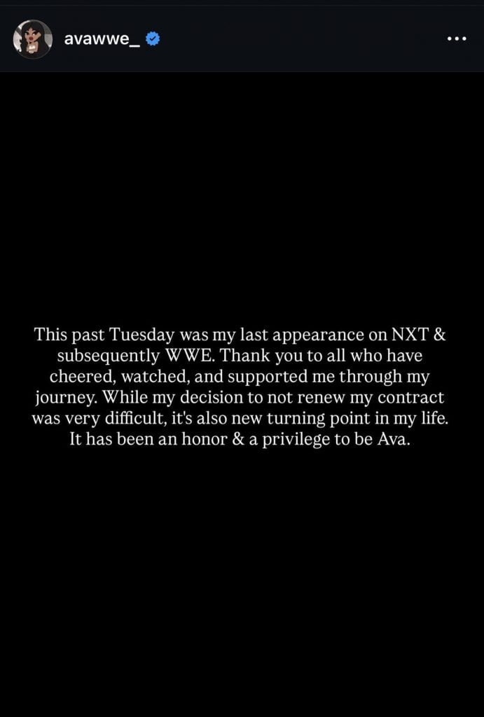 NXT General Manager Ava has announced her departure from NXT and WWE. She has decided not to renew her contract.