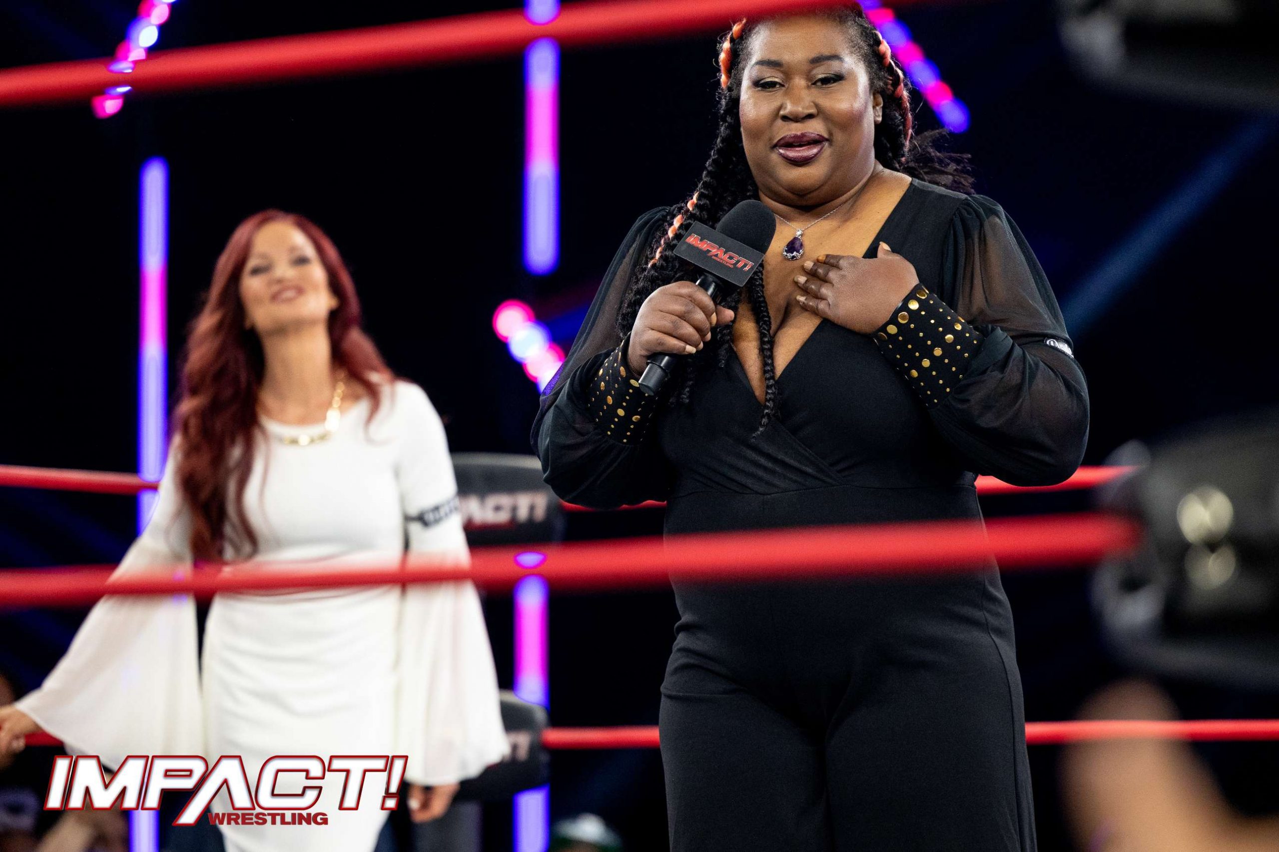 Awesome Kong becomes the second woman [first was Gail Kim] to ever enter into the IMPACT Hall of Fame. At Knockouts Knockdown, Kong received her flowers as Christy Hemme came to the ring to make the announcement. Kong officially retired from the ring at the end of August at NWA EmPowerrr in a surprise announcement.