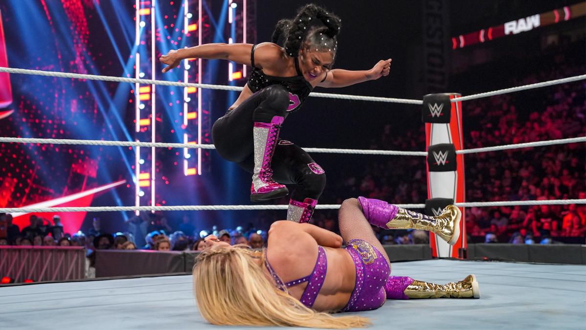 In the main event, Bianca Belair took on Charlotte Flair. The match ended in a disqualification when Becky Lynch interfered much as she did on Belair’s match against Sasha Banks on Friday’s SmackDown.