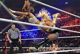 The Survivor Series crowd was floored by Beth’s top rope Glam Slam, a maneuver that looks devastating enough on its own. While we’re at it, Natalya’s double Sharpshooter also had more “wow” factor as a Divalicious moment. Long live the “pin-up strong” movement.