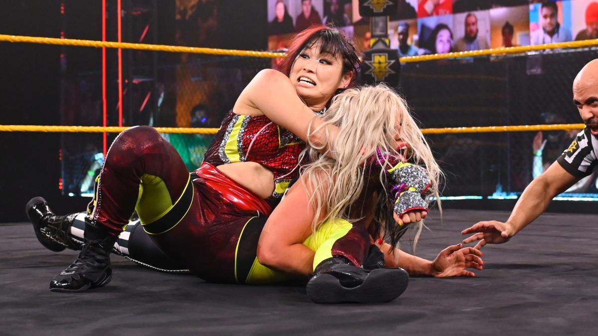 Moments later, Banks tried to get Jax to the mat so that she could lock in the Bank Statement but she had to counter out of the strength of her opponent to deliver. After planting Jax, Banks was able to apply the submission in the middle of the ring.
