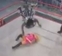 We open with Christy Hemme backstage with Madison Rayne and Tara. Madison proceeds to shred Christy verbally, unloading on the poor redhead her frustrations and fury. The promo is actually pretty hilarious and well done, with Tara providing the straight face in the background. Words can’t do it justice, you should have a listen for yourself. I’m loving Madison on the mic!
