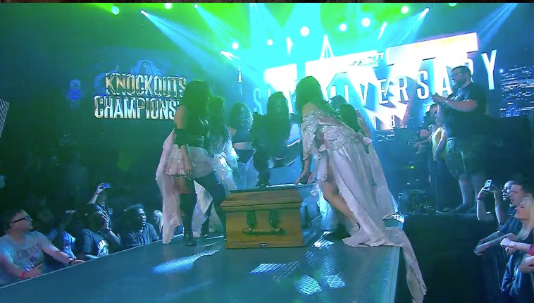 Tonight at Slammiversary, Su Yung successfully retained the Knockouts Championship against Madison Rayne. Before the match could even officially start, Rayne attacked the Champion, who was accompanied by her loyal Undead Brides, from the entrance ramp. Rayne tosses Yung back in the ring and at the sound of the ring bell, Rayne connects a top … Read more