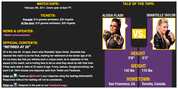 Check out our mini site for the upcoming ChickFight match between Alissa Flash and Shantelle Taylor which will take place on February 5th in San Francisco.