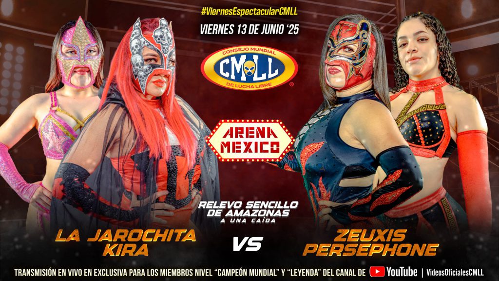 Hola a todos, and welcome to the CMLL Weekly Review! Ahead of their big matches for next week’s crossover shows with AEW and ROH, the CMLL World Women’s Champion Zeuxis and Persephone competed in a tag match versus one half of the CMLL World Women’s Tag Team Champions, La Jarochita, and one half of the Mexican National Women’s Tag Team Champions, Kira.