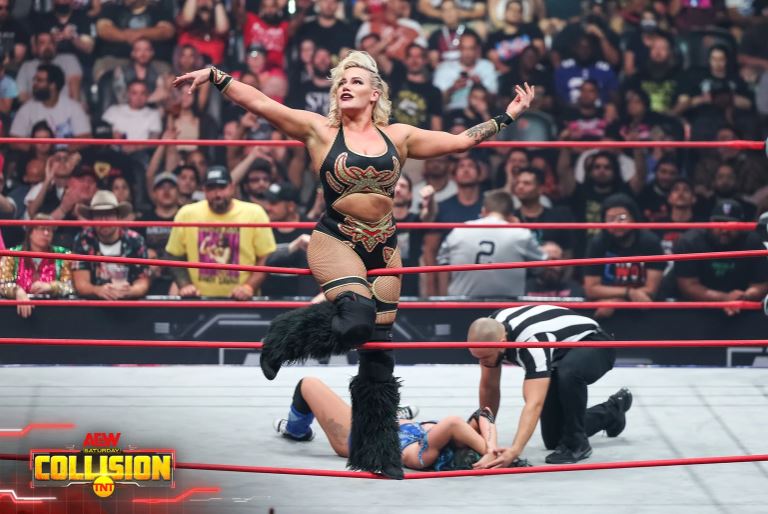 Since her arrival in AEW, Taya Valkyrie has been predominantly chasing the TBS Championship with thus far little success. This week on Collision, she displayed a more vicious approach to her in-ring work and came away with the victory over crowd favourite, Skye Blue.