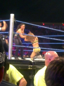 Detailed WWE Superstars Spoilers: October 6th, 2011 (Plus Picture) October 6, 2011October 5, 2011 by Melanie Detailed spoilers from this week’s WWE Superstars taping from Diva Dirt’s Cryssi. Read below: Spoiler Tamina dominates early on, battering AJ and trying to stretch her out with a couple of unique variations of the camel clutch. Sadly, the crowd isn’t very into it but AJ does attempt to fight back. Eventually she gets to her feet but Tamina takes her back down, kicks her around and goes for a cover. Two count. Tamina maintains her control and finally the crowd gets behinds AJ. She starts fighting back but it’s short lived. Tamina goes to the top for a splash but AJ moves out of the way and finally gets her chance. She lays Tamina out with a nifty little move and gets a huge win.