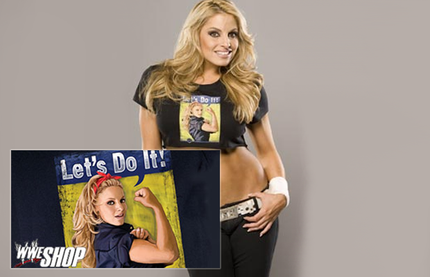 I’m not personally a fan of shirts that have a picture of the wrestler on it, but I liked the idea behind this one. It pays homage to the legendary Rosie the Riveter photo, with Trish in the iconic pose. It was an awesome idea and a cool shirt for female fans.
