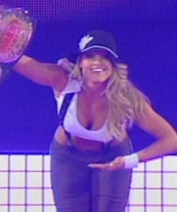 Trish donned a “gangster” style outfit complete with suspenders and a fedora for her match with Christy Hemme. Oh, the Women’s Championship also made a nice accessory.