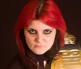 She was on a roll when she made her way North to Canada in November for NCW Femmes Fatales – toppling a recently returned Cat Power at their first set of tapings, then getting disqualified in matches with Mary Lee Rose and Sweet Cherrie due to some accidentally-on-purpose low blows at the second set of tapings. She also showed LuFisto that she’s ready for that challenge too… locking herself in a steel cage with her (right after LuFisto’s bloody battle with Mercedes Martinez) and battering her, just because she could.