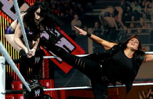 Paige dodges and ducks several attacks from Tamina, tripping her up and getting in an early pin attempt. She springs up when Tamina kicks out, hitting her with a dropkick and going for another pin. Tamina kicks out again.