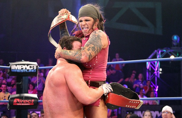 ODB and Eric Young became the first (and only) inter-gender team to hold the Knockouts Tag Team Championships when they defeated Gail Kim and Madison Rayne. Worse than having a man holding one of the few female championships in TNA was the fact that the titles seemed to disappear shortly after. It would be over a year before they were acknowledged again, when management finally seemed to care that Eric wasn’t a woman and stripped the team of the titles. In a sense, their March 2012 title win was the shot that killed the Knockouts Tag Team Titles; it just took until June 2013 for it to hit.