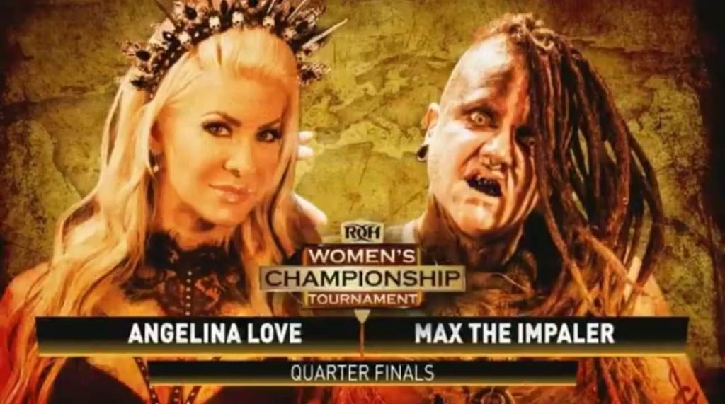 ROH TV featured the two matches which first saw Max the Impaler taking on Angelina Love. Love, a former Women of Honor Champion herself, received a bye in the first round, so this was the first time she had to compete in this tournament.