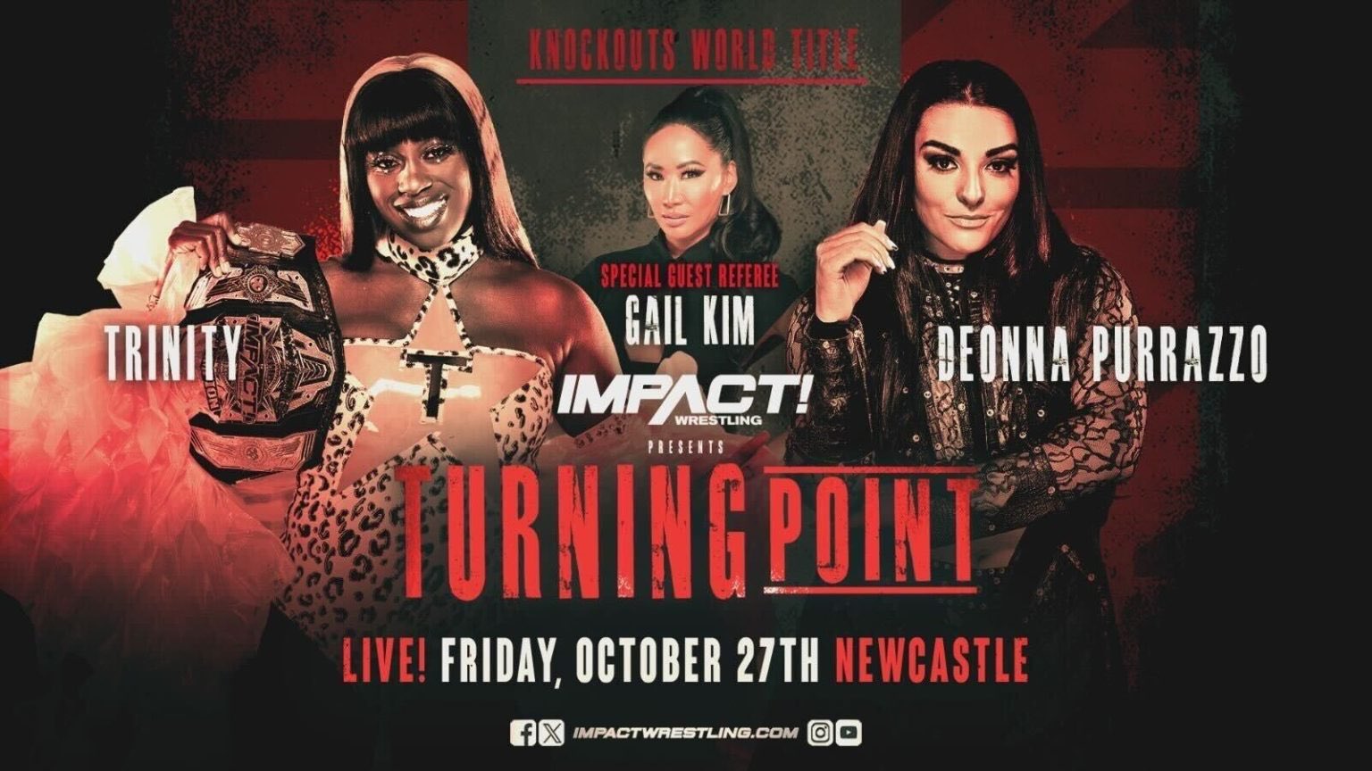 Gail Kim will be the special guest referee for the Knockouts World Title match at Turning Point. The event will be taped today and aired on Nov. 3. The match is between the current champion Trinity and her challenger Deonna Purrazzo.