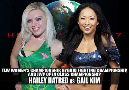 Hatred, who now lives in Japan where she’s picked up several major championships, will put three (yes, three!) belts on the line against Gail — the TLW Championship, the Hybrid Fighting Championship and the JWP Open Class Championship.