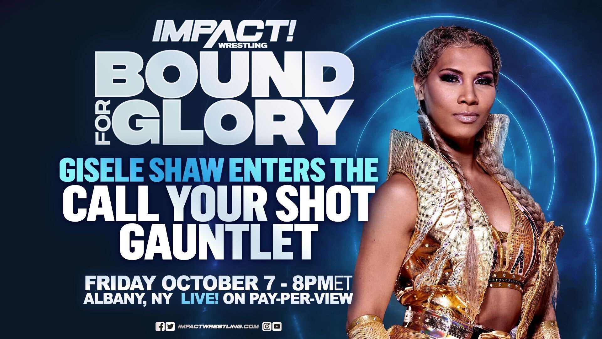 Gisele Shaw is the first woman announced for the Call Your Shot Gauntlet Match to take place at Bound for Glory on Oct. 7. The Call Your Shot Gauntlet Match is a Bound for Glory annual match that is a 20-person bout. The winner receives a trophy and a contract they can invoke anytime within one year for a championship match of their choosing.