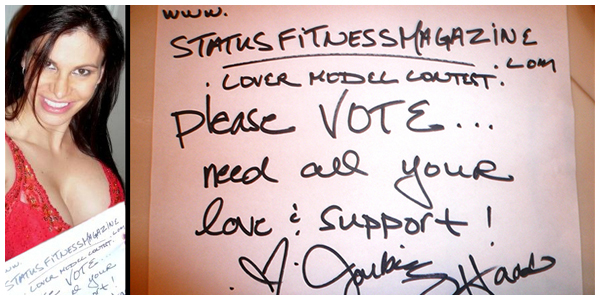 Former WWE Diva and TNA Knockout, Jackie Haas is one of the candidates to become a cover model for Status fitness magazine. Haas is currently in third place and is asking fans to vote for her to win the cover spot.