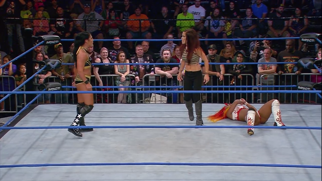 While it was nice to see Katarina Leigh build some character to this new persona but I still think pairing with Grado is a joke. His whole fiasco this week was used as a way to further the Kongo Kong/Moose feud and I’m still holding out to my theory that she’ll be the revealed as this mastermind behind these backstage attacks on Impact. Could her walking out on Grado be a clue of that!? Surprise me Impact!