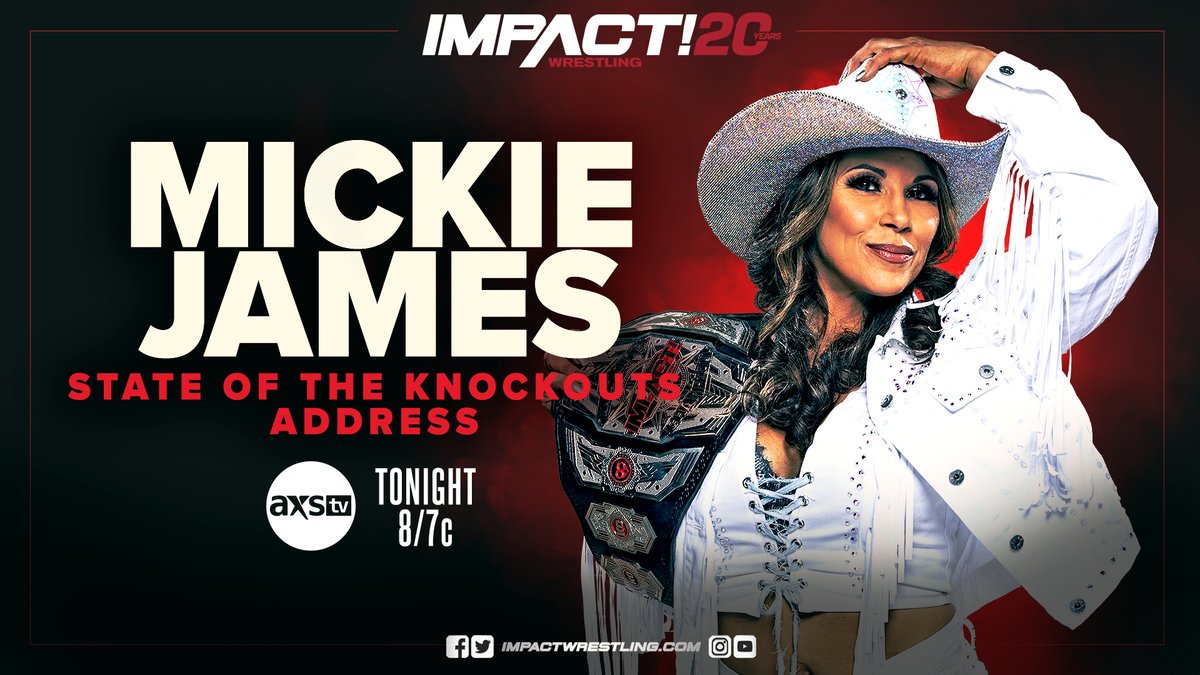 Just two days before Mickie James enters the WWE Royal Rumble as the IMPACT Knockouts World Champion, she is set to address the Knockouts tonight. A state of the Knockouts Address is set for tonight.
