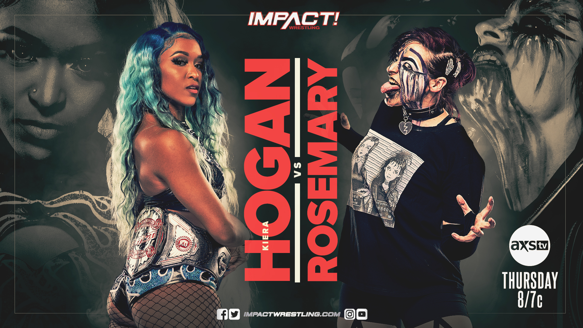 The second match seems to be where we are headed for a Knockouts Tag Team Championship match at next month’s Slammiversary event. One-half of the Knockouts tag champs Kiera Hogan will be facing Rosemary tonight. Last week, Rosemary and Havok took out the tag champs last week backstage, and while Tasha Steelz found herself slammed into a wall, Hogan was dumped in the trash bin.