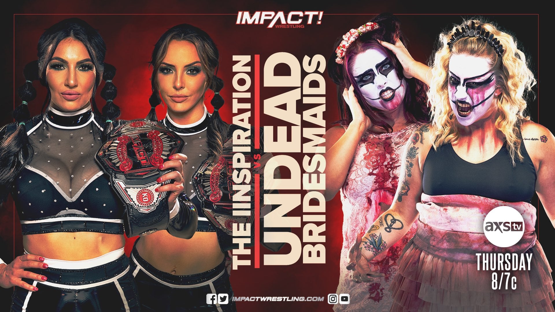 The IInspiration will be defending their Knockouts World Tag Team Championships in a rematch against the team they beat for the belts – Decay. Decay took out the Undead Bridesmaids last week much to the dismay of the champs. Tonight, The IInspiration takes on the Undead Bridesmaids themselves in a non-title match.