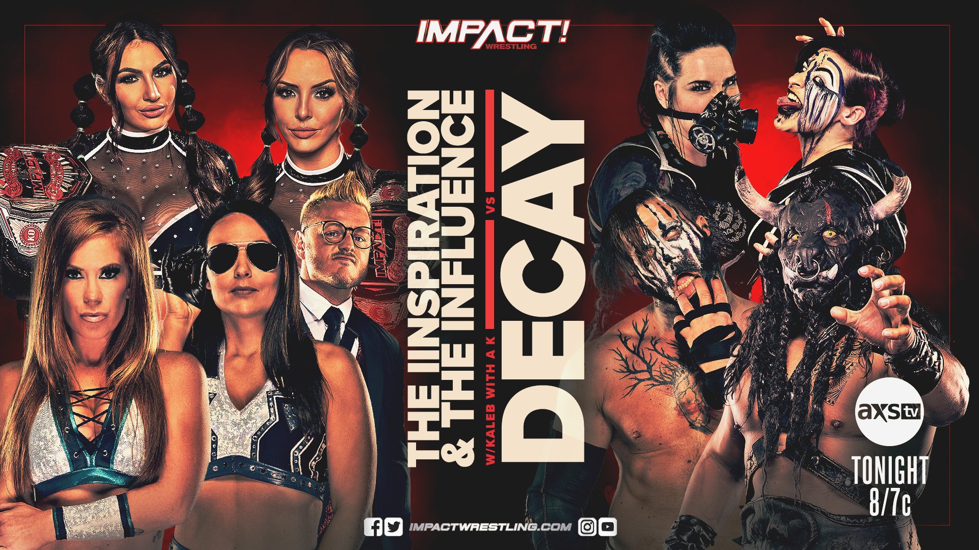 Also set is another intergender tag team bout as the Knockouts World Tag Team Champions The IInspiration teams up with The Influence to take on all four members of Decay.