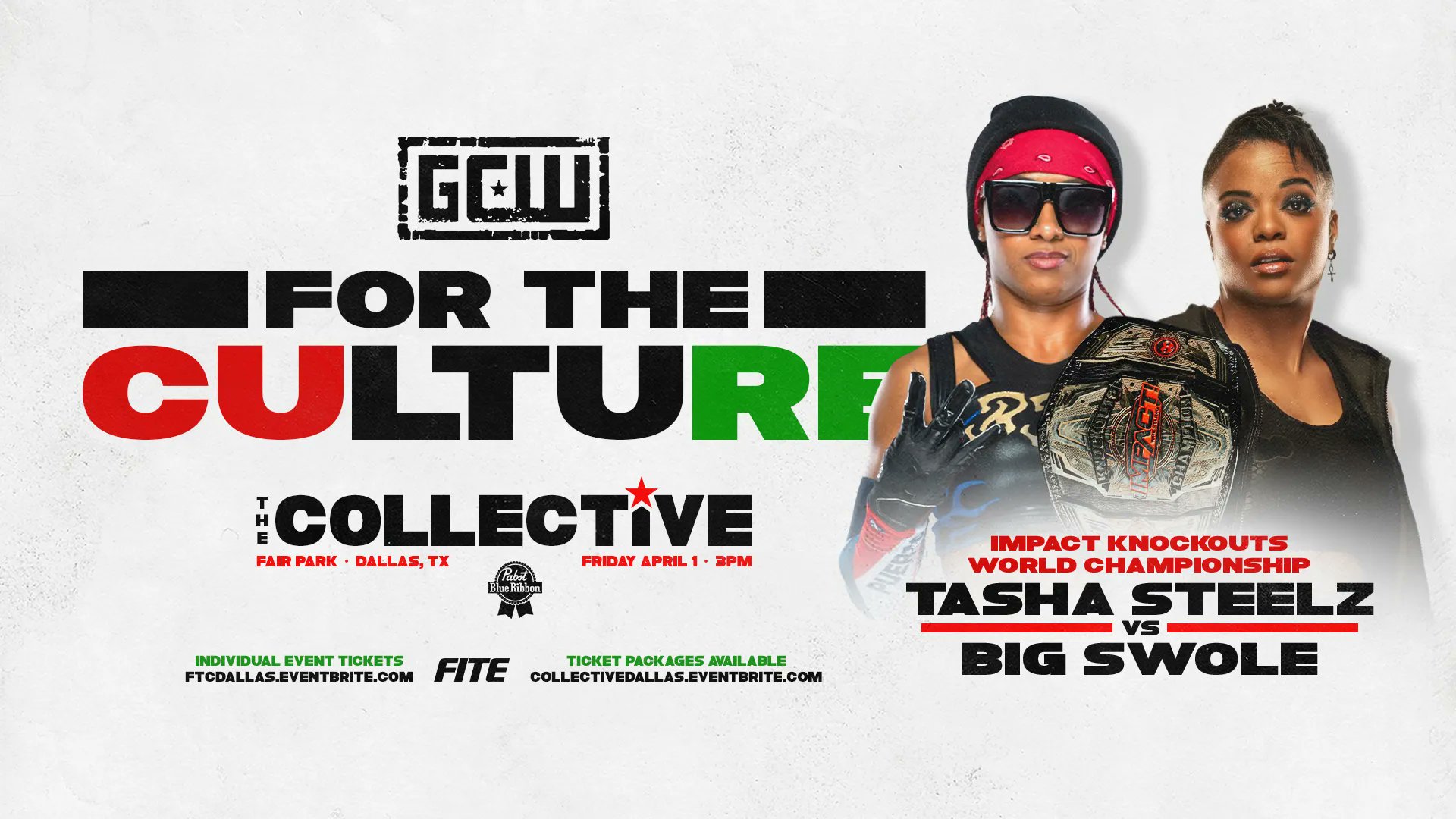 Tasha Steelz is just over one week into her first reign as Knockouts World Champion and is ready to defend the belt outside of the IMPACT Zone. She will be defending against Big Swole at GCW’s For the Culture event on April 1 in Dallas, TX. Trish Adora is also scheduled for the event but an opponent has yet to be named.
