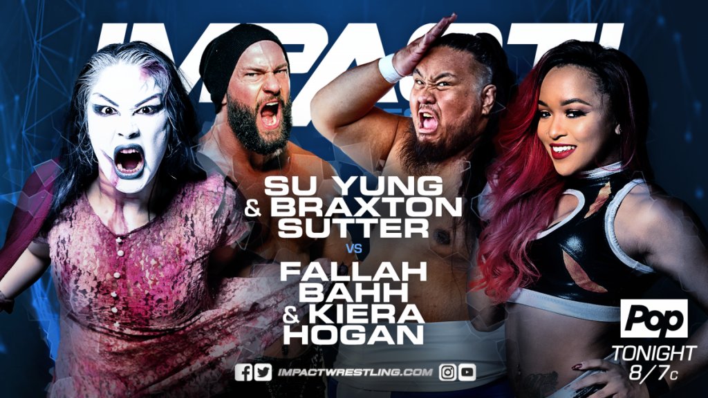 Tonight on Impact Wrestling, ahead of her Knockouts title shot against Allie this Sunday, Su Yung teams up with Braxton Sutter take on the team of Kiera Hogan and Fallah Bahh.