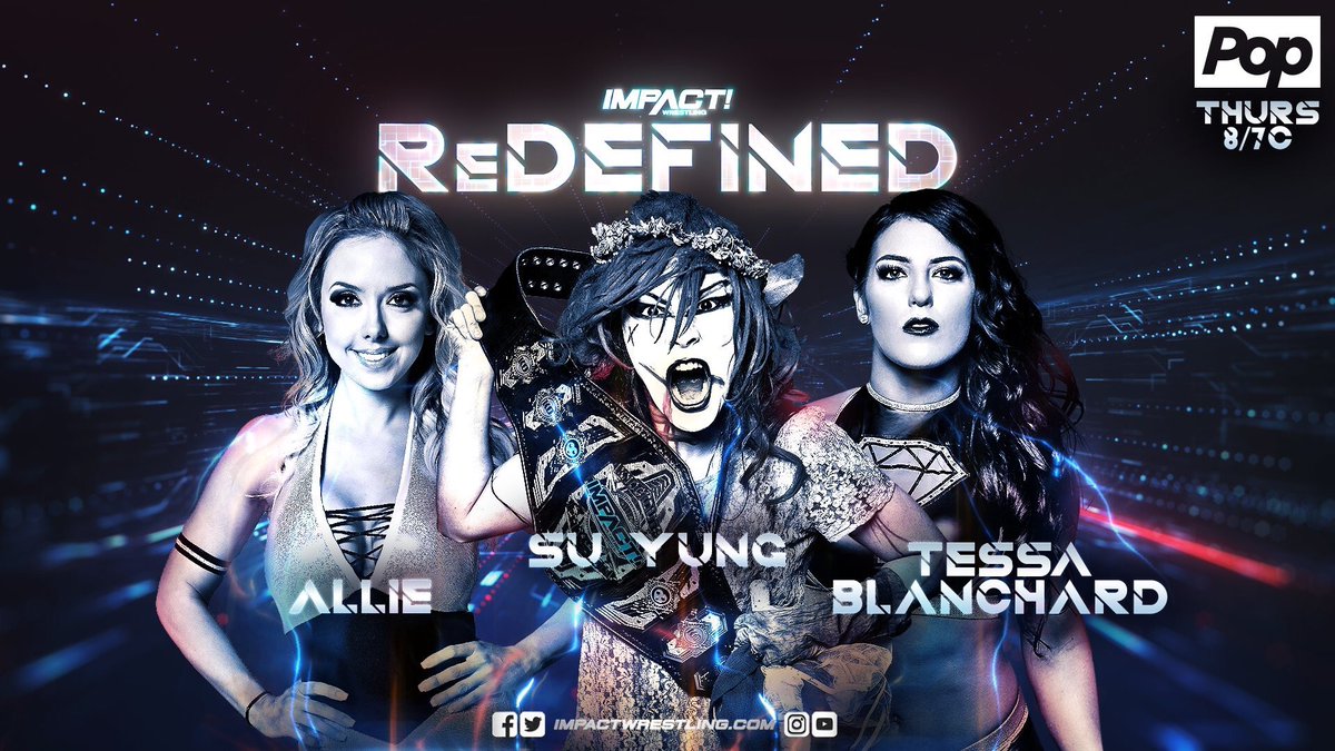 Tonight on Impact Wrestling’s ReDefined episode of special, Su Yung defends the Knockouts Title against Allie and Tessa Blanchard in a Triple Threat match.