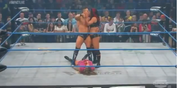 Also backstage after the match, ODB is shown screaming on her phone at Eric Young, stating that Tara and Jessie have crossed the line by touching her liquid courage and dumping it all over her. She says that he better be there this Sunday because the four of them are going to meet in a mixed tag match this Sunday! With a raging scream, she ends the call with an “I LOVE YOU” and heads off to get prepared for Sunday.