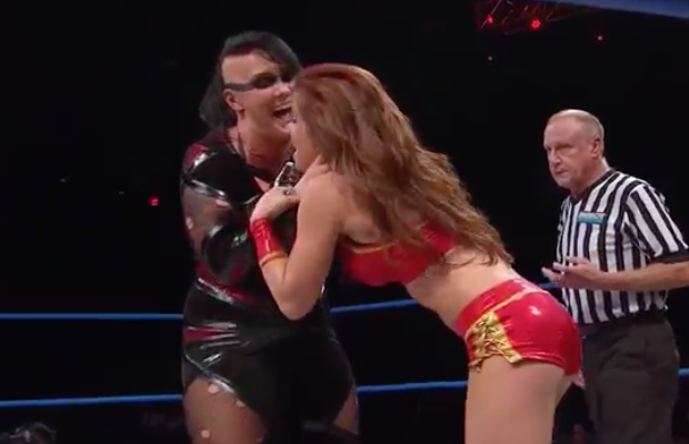 Havok tosses Madison back into the ring where she applies a Full Nelson lock. Madison manages to toughen it out long enough until Havok releases her grip, cackling over the killer queen.