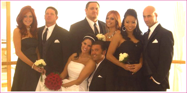 Knockout Traci Brooks and wrestler Frankie Kazarian said their “I do’s” last week in the presence of several of their TNA family — but wait, who’s that? WWE Diva Gail Kim reunited with her former co-workers for the wedding and it looks as though she was part of Traci’s bridal party along with Christy Hemme and SoCal Val.