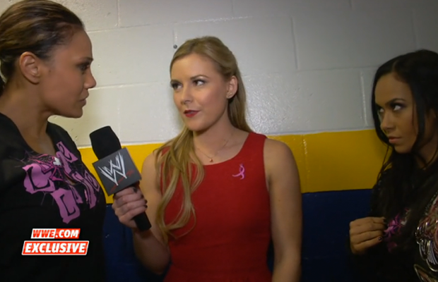 After decimating Brie Bella on Raw, AJ Lee and Tamina Snuka spoke with Renee Young about why they did it.