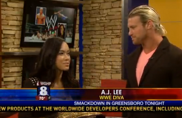 AJ Lee and WWE World Heavyweight Champion Dolph Ziggler appeared on FOX 8 in Greensboro, North Carolina this morning to promote the Smackdown taping at the Greensboro Coliseum this evening.